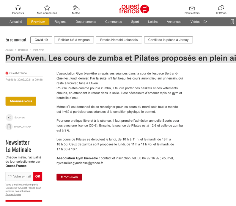 Cours de PILATES & ZUMBA - à Lesconil et au Guilvinec - été 2024