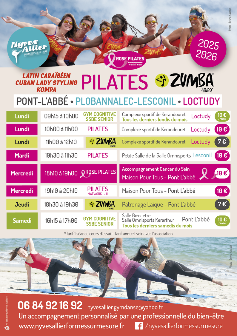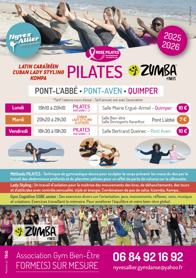 • Renseignement et Inscription auprès de Nyves Allier- éducatrice sportive certifiée PILATES :